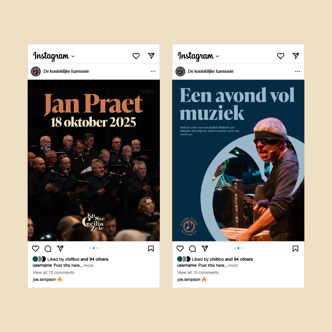 Since 1833, the band has been a constant presence within the community and a symbol of tradition, connection, and musicality. Across generations, the people of Zele have built a rich story together, shaped by pride and dedication, from banners and jubilees to international recognition. Respect for this history was central to the rebranding process. The new logo translates the heritage of the association into a contemporary and powerful visual identity. It reflects what the band stands for today: bringing people together through music, across boundaries of time, age, and place.